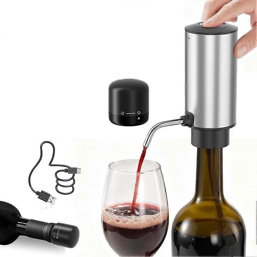 Effortless aeration and pouring: this electric wine aerator, crafted from durable stainless steel, delivers perfectly aerated wine into your glass at the touch of a button. It helps soften harsh tannins, enhance aromas and round out flavors, giving your favorite reds and whites a smoother, more luxurious taste experience every time.Fast USB-C charging performance: equipped with an eco-friendly rechargeable lithium battery and universal Type-C interface, this wine dispenser offers reliable, long-lasting power. A full charge in about 2 hours can serve up to 30 bottles continuouslyEasy cleaning, no mess maintenance: designed for simple operation and quick cleanup, this electric wine pourer minimizes drips, splashes and waste. After use, just place the silicone hose into a bottle or glass of clean water and press the button; let it run until the water flows clear, then stop for a refreshed, hygienic system every time.Keeps wine fresh up to 7 days: when you cannot finish a bottle, the included lockable wine stopper helps preserve flavor and aroma for up to a week. By sealing the bottle tightly, it reduces oxidation so your red or white wine stays smoother and more enjoyable, eliminating worries about spoilage and unnecessary waste at home or gatherings.Elegant gift for wine lovers: featuring a sleek stainless steel exterior and refined modern design, this electric aerator set makes a thoughtful gift for wine enthusiasts and connoisseurs. Ideal for picnics, family dinners, ladies' nights, wine tastings, birthdays, holidays, business events and housewarmings, adding style to any occasion.Color: SilverMaterial: Stainless SteelPackage Contents:1*wine decanter 1*wine stopper 1*USB cableOnly the above package content, other products are not included.Note: Light reflection and different displays may cause the color of the item in the picture a little different from the real thing. The measurement allowed error is +/- 1-3cm.