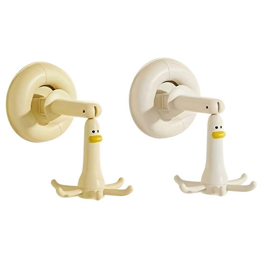 2Pc Cartoon Duck Suction Cup Hook Six-Claw Rack 360 Dual-Axis Rotating No-Drill Kitchen Rack Bathroom Small Hanger Home