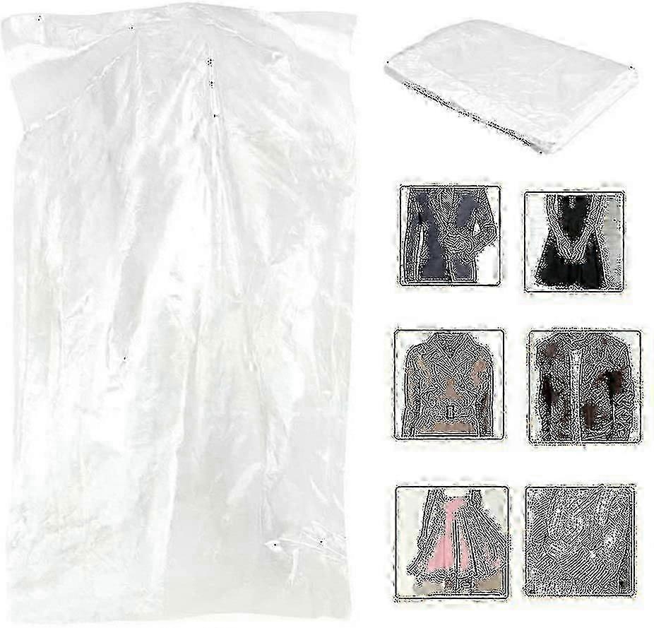 product 1.Lightweight Clothing Dust CoverGarment bag is light, thin, easy to carry, use in closet without taking up space, can store more clothes, if you use heavy dust cover on heavy clothes,will increase the weight of the clothes,thin and light dust cover is more suitable for your use.2.ClearHighly transparent protective cover, you can easily identify the clothes inside, save you time, no plastic smell, waterproof and moisture-proof, long-term use will not corrode and aging, put on the protective cover after washing and drying,it can protect your clothes Free from dust, odors and pet hair.3.50 Pack Garment BagYou will get a 100 Pcs dust cover, which can be opened by gently rubbing your hands before use, the bottom can be opened to load clothes, and the top has a special hanger opening for the hanger to pass through, not only for home use, but also very suitable for dry cleaners, Retail store or tailor shop to protect clothing.4.Wide range of applicationsSuit for home storage, office dress changing, dry cleaners, washing service sites etc. Note: Due to the light and screen setting difference, the item's color may be slightly different from the pictures. Please allow slight dimension difference due to different manual measurement.