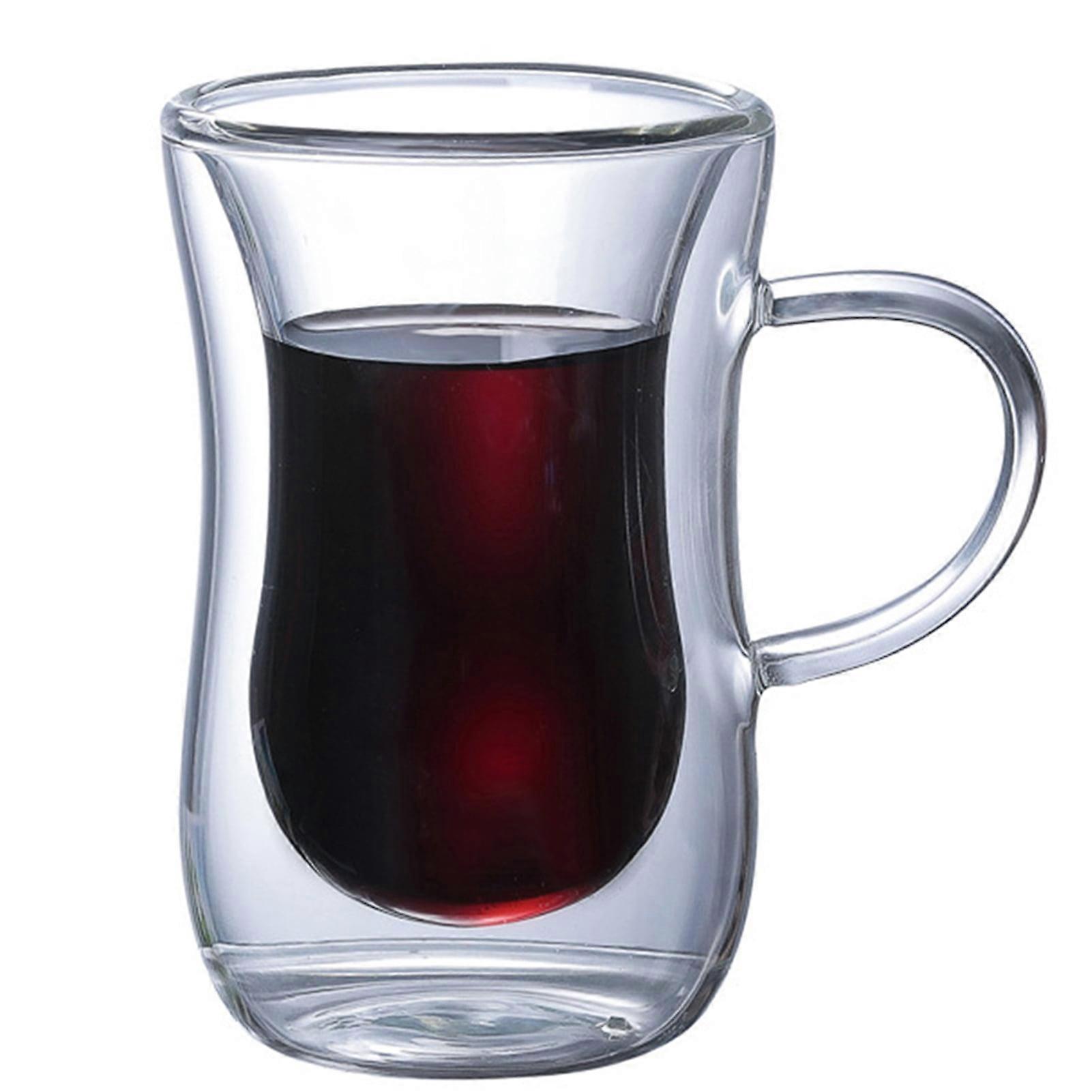 Hariumiu Glass Cup Double Wall Design Transparent Glass Coffee Mug for Restaurant-Transparent,With Handle