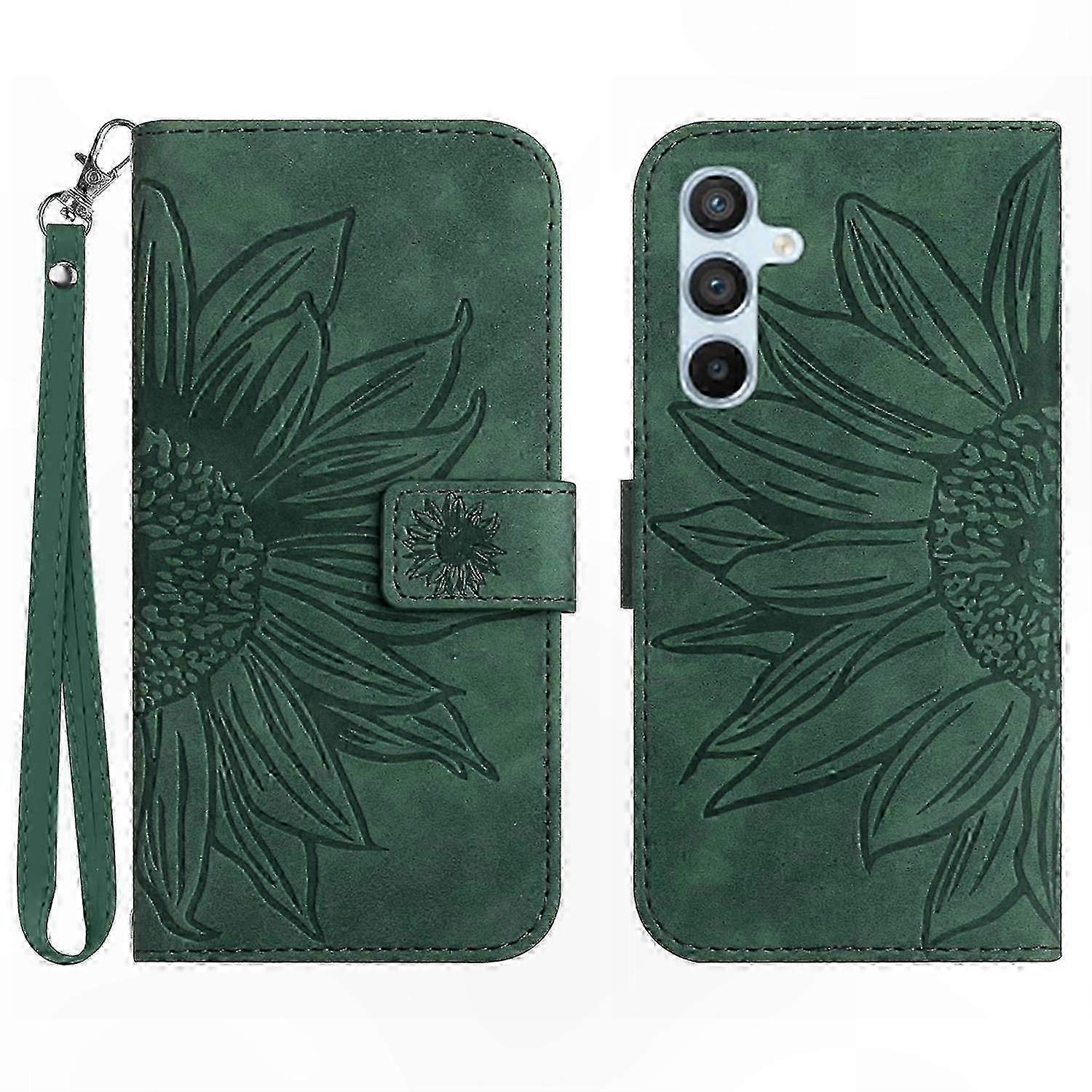 Sunflower Leather Wallet Case with Wrist Strap for 5G and 4G Phones