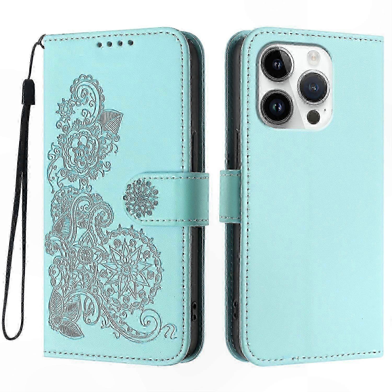 Mandala Flower Leather Wallet Case with Strap for Mobile Phones