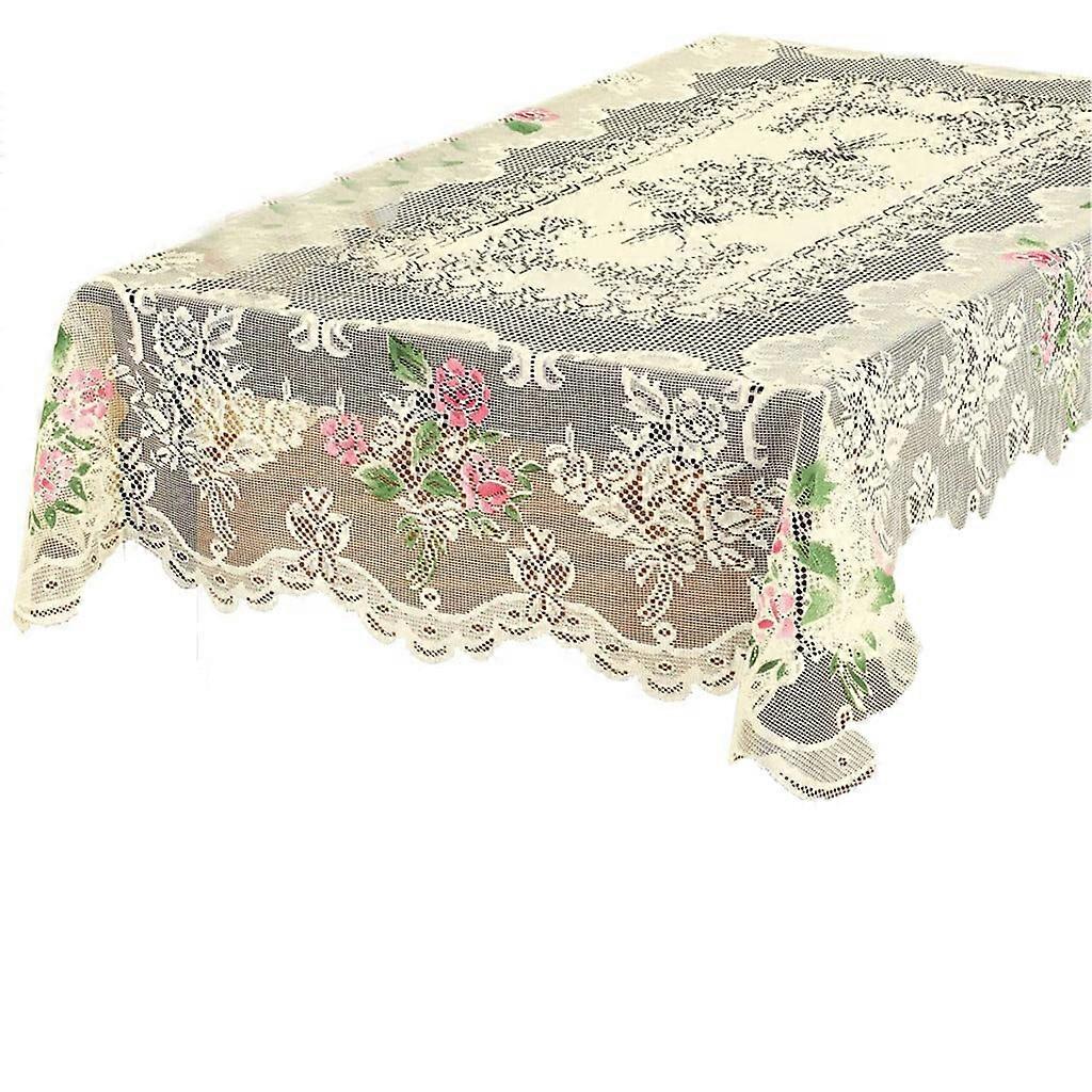 Vintage Lace Rectangle Tablecloth 60x90inch, Shabby Embroidered Table Cover for Wedding, Holiday, Long Dinner Tables (White, 152x228cm)