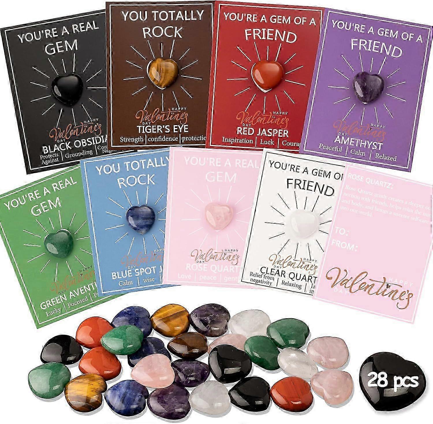 28 Pcs Valentines Day Gifts For Kids-valentines Day Cards For Kids School Classroom, Valentines Heart Crystals With Cards, Valentine Exchange Party Fa