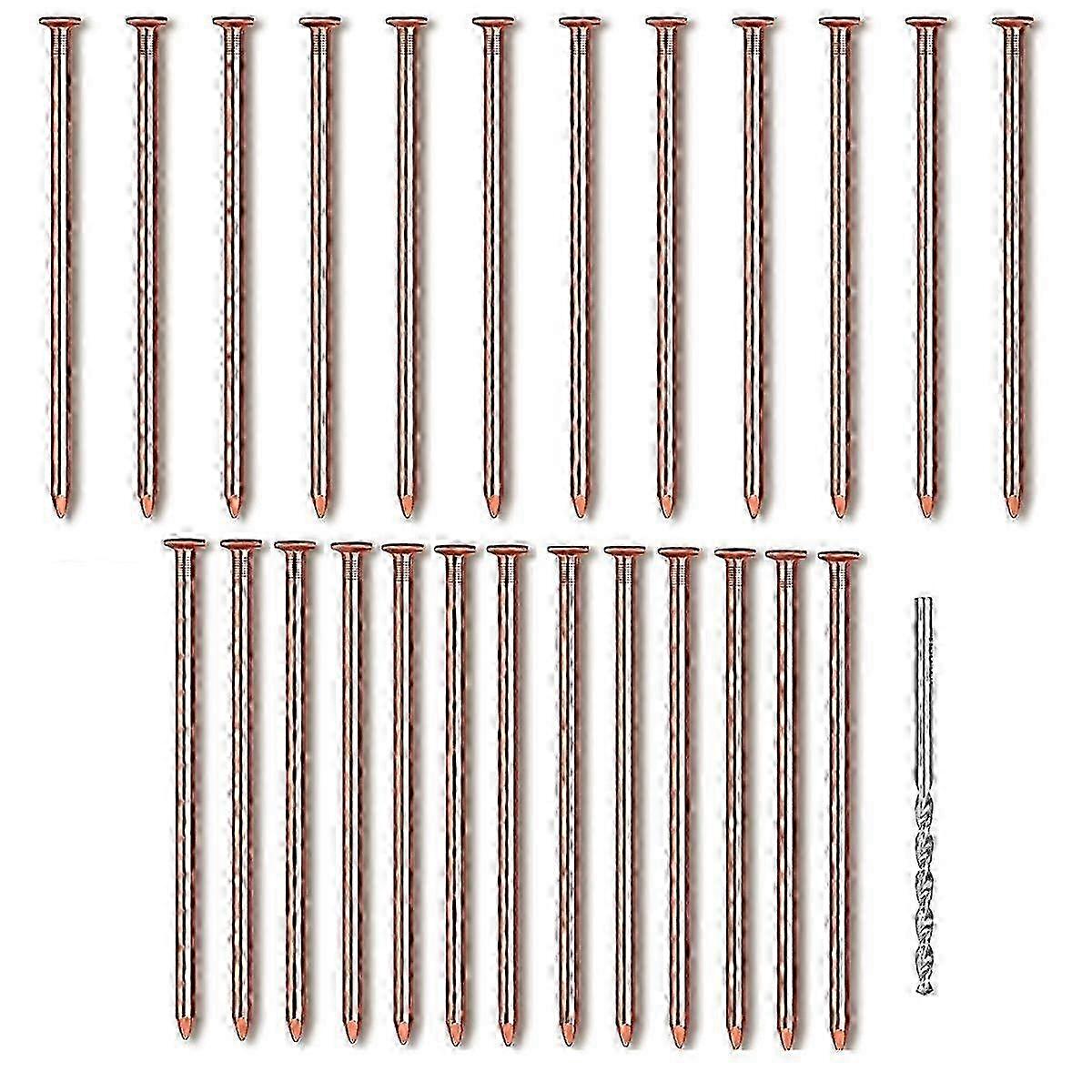 25Pcs Copper Nails for Tree Stumps 3.14 Inches Long Pure Copper Nails Bulk with Drill Bit to Remove Edition 0704