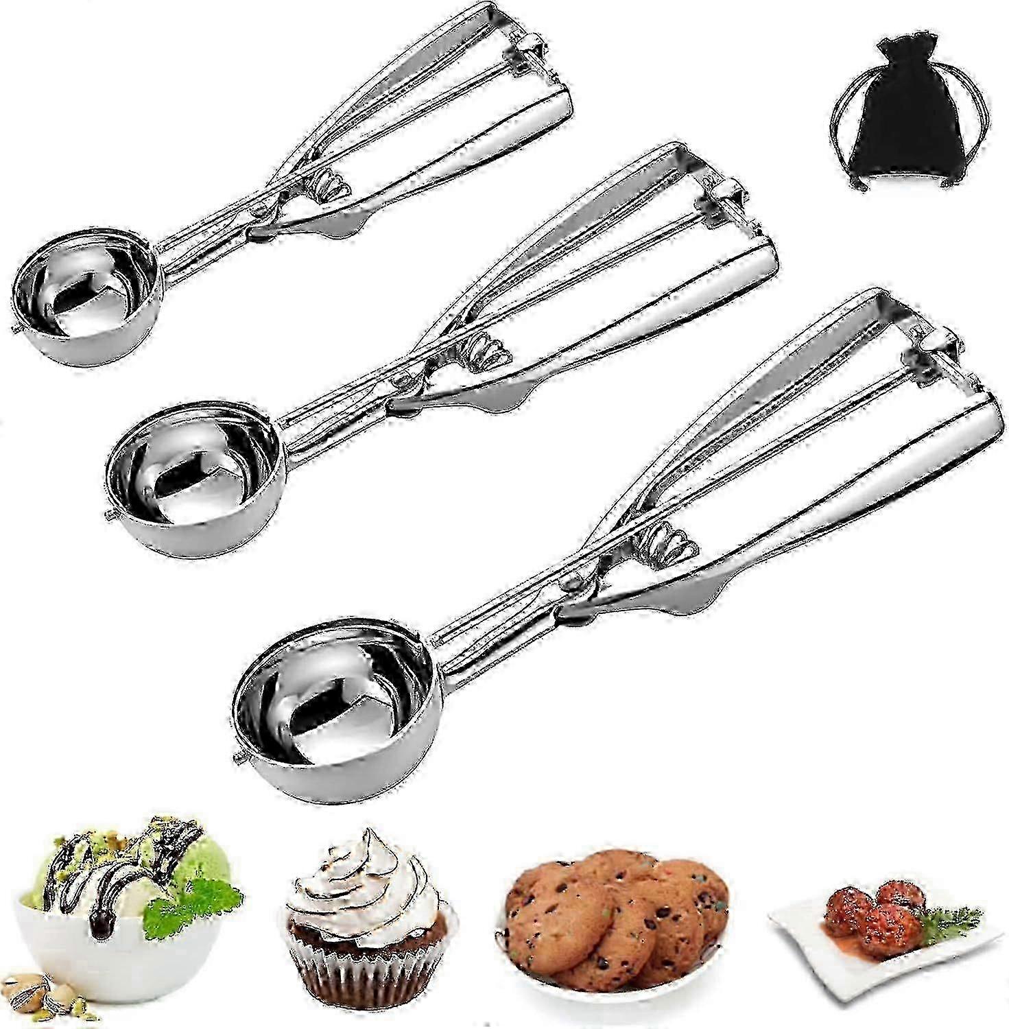 2026 2026 Latest Model Ice Cream Scoop, 3Pcs Cookie Scoop Set, Stainless Steel Cookie Scoops for Baking