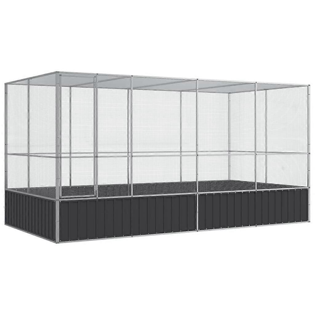 Aviary With Extension Silver 418X207x212 Cm Steel Bird Cages