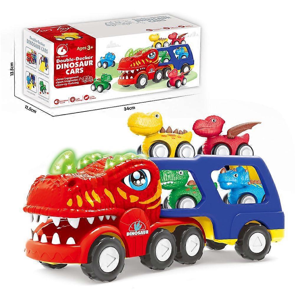 Dinosaur Toys for 1 2 3 4 5 Year Old Boy, Dinosaur Trucks for Toddlers 2-4 Years with 4 Small Pull Back Dino Cars, Kids Christmas Birthday Gifts for B
