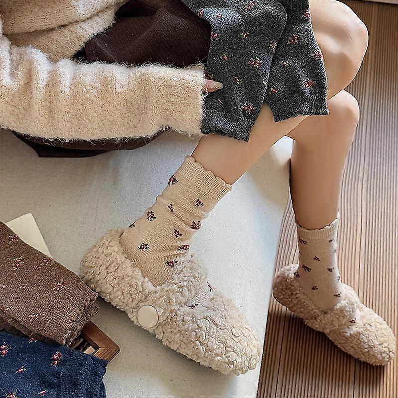 Dark Gray; Size: One Size-Women's Thick Retro Wool Socks, Korean Style Casual Floral Pattern Soft and Warm Long Socks for Autumn and Winter