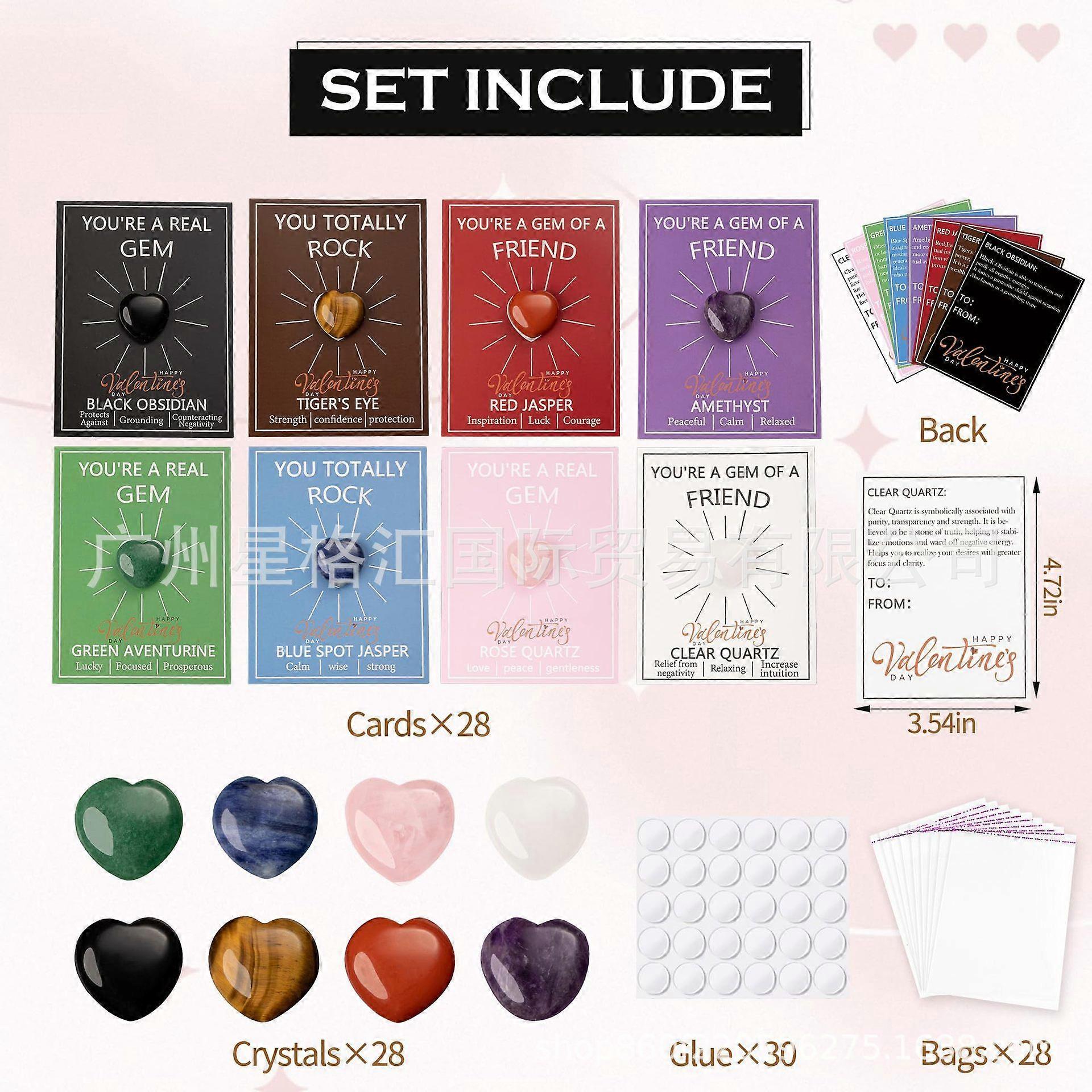 Children'S School Valentine'S Day Cards, 24 Valentine'S Day Heart-Shaped Crystals With Greeting Cards, Perfect For Boys And Girls For School Class Par