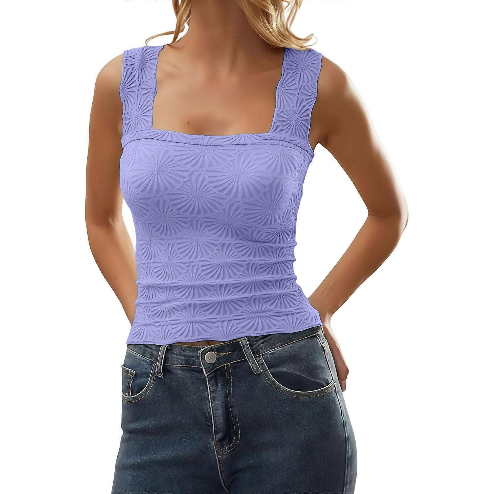 Women Square Neck Wide Straps Crop Tops Casual Floral Sleeveless Trim Fit Cropped Cami Vest Top Purple XL