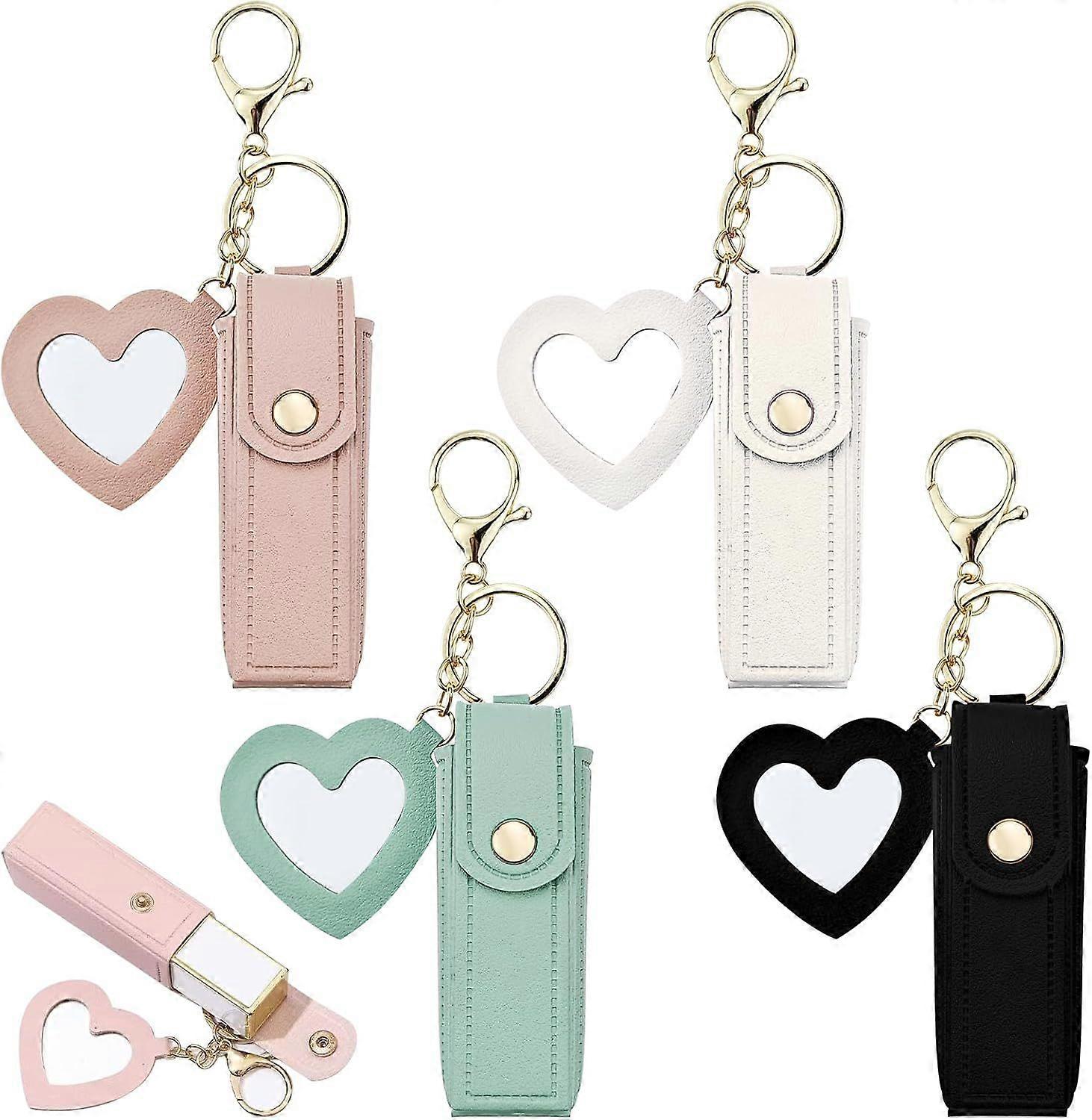 4 Pack PU Leather Potable Chapstick Holder Key Chain Bulk with Mirror, Lipstick Keychain, Lip Balm Organizer Holder Lipstick Travel Makeup Storage Cas