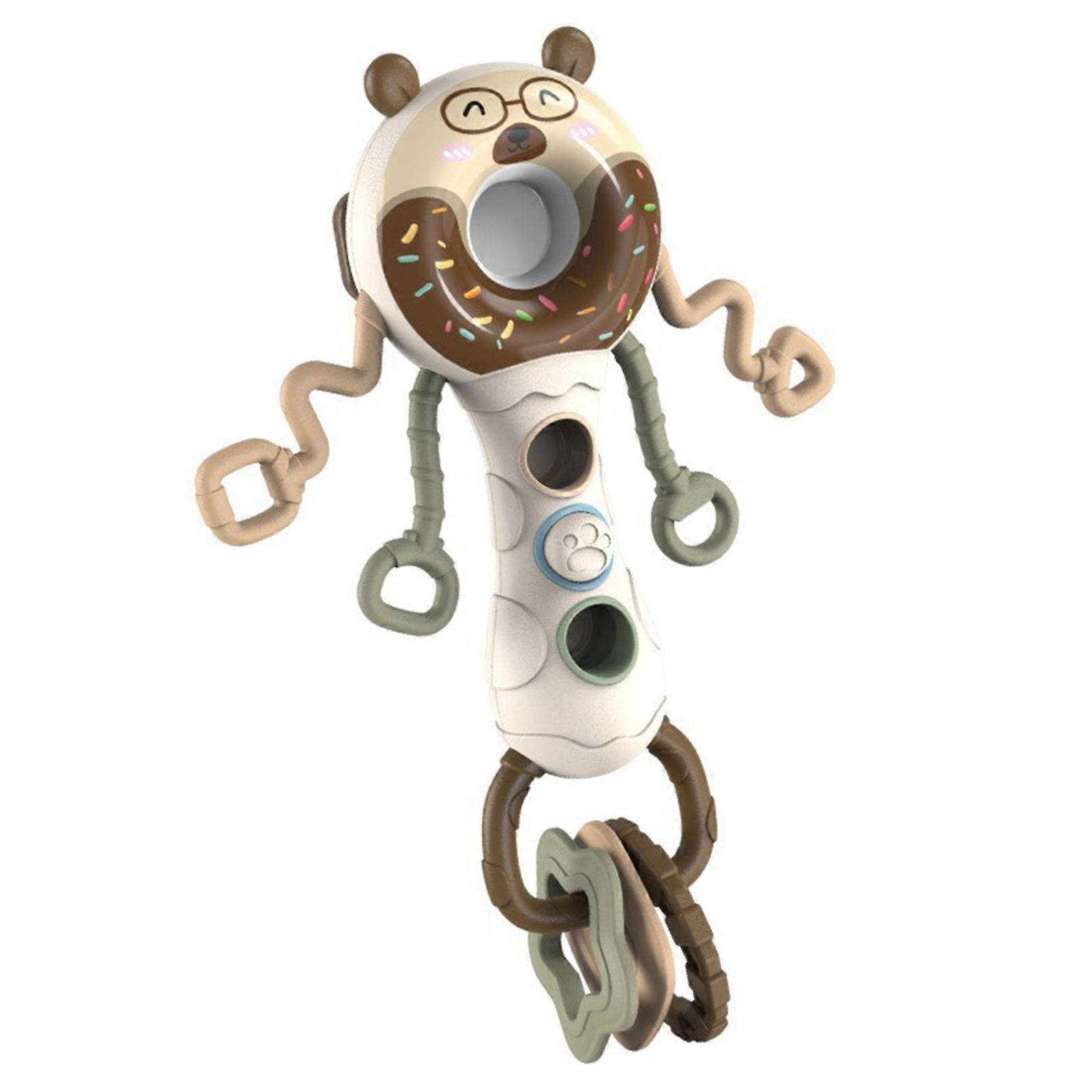 Multiuse Baby Rattle Teether Toy for Infant Fine Motor Skill Growth Hand and Eye Coordination Teething Pains Relief Toy brown