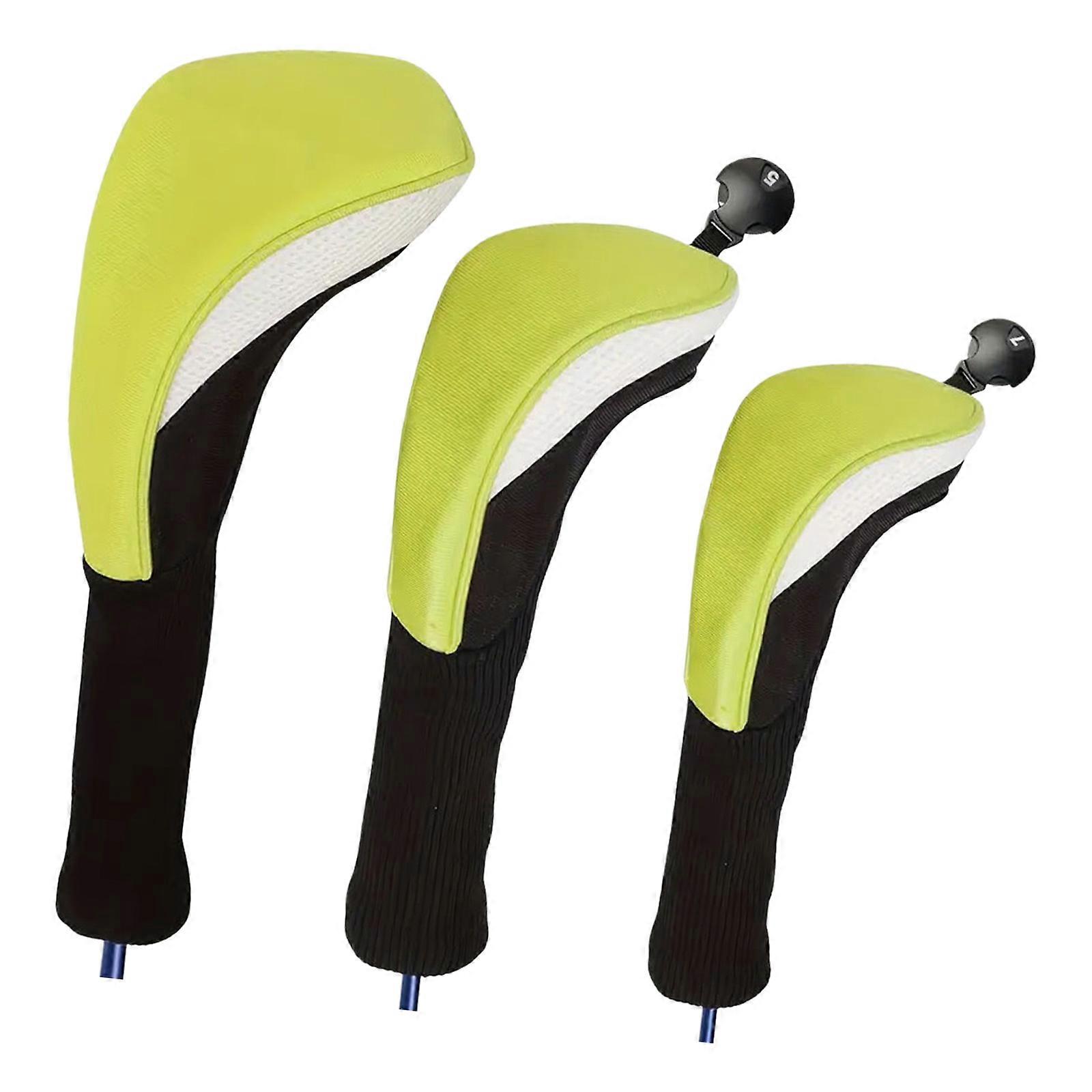 3Pcs Soft Wood Golf Club Driver Headcovers Protective Case Long Neck Mesh Golf Club Cover for Men and Women Enduring Yellow