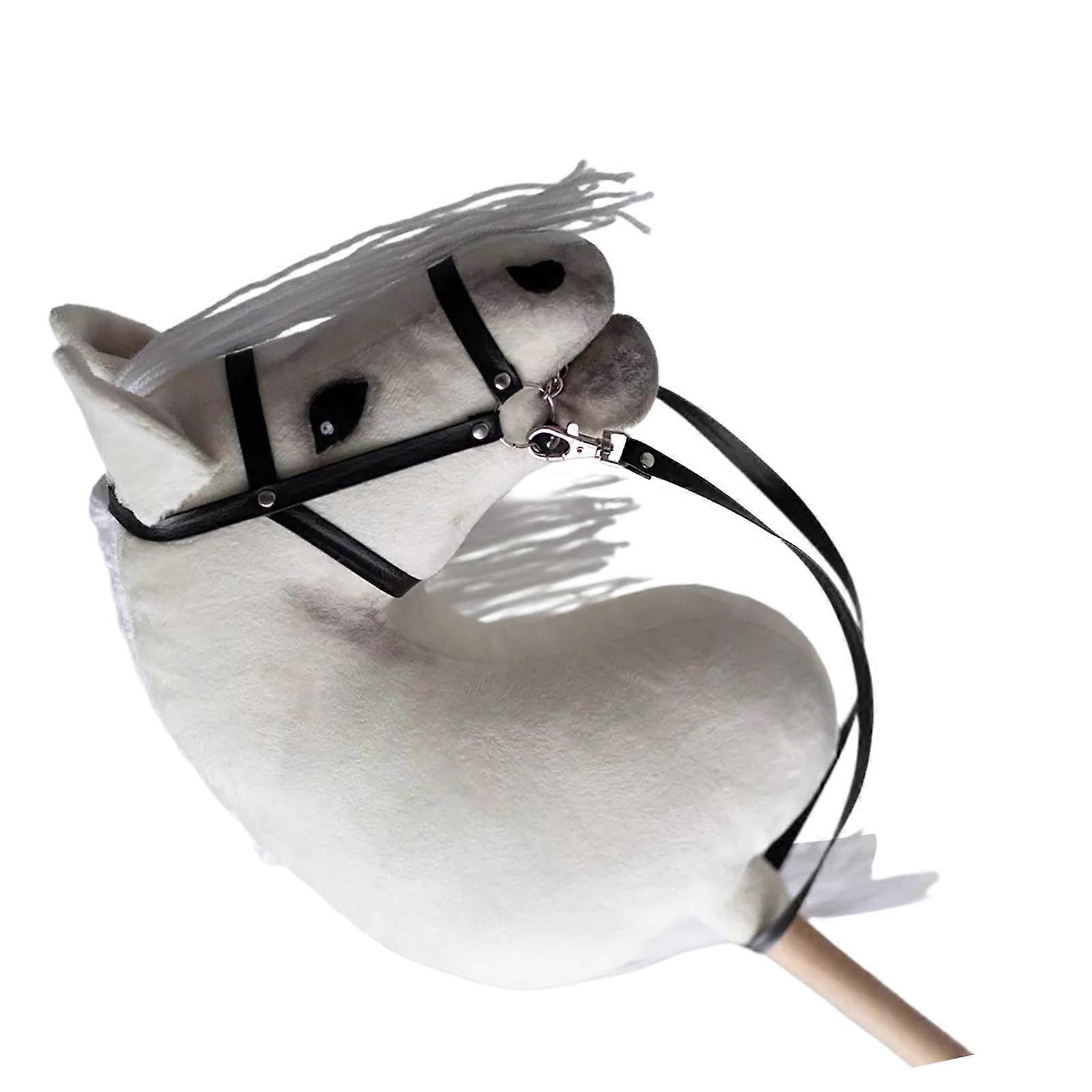 Plush Hobby Horse with Wooden Handle Cartoon Horse Head Props Competition Toy For Unique School Event And Plays White