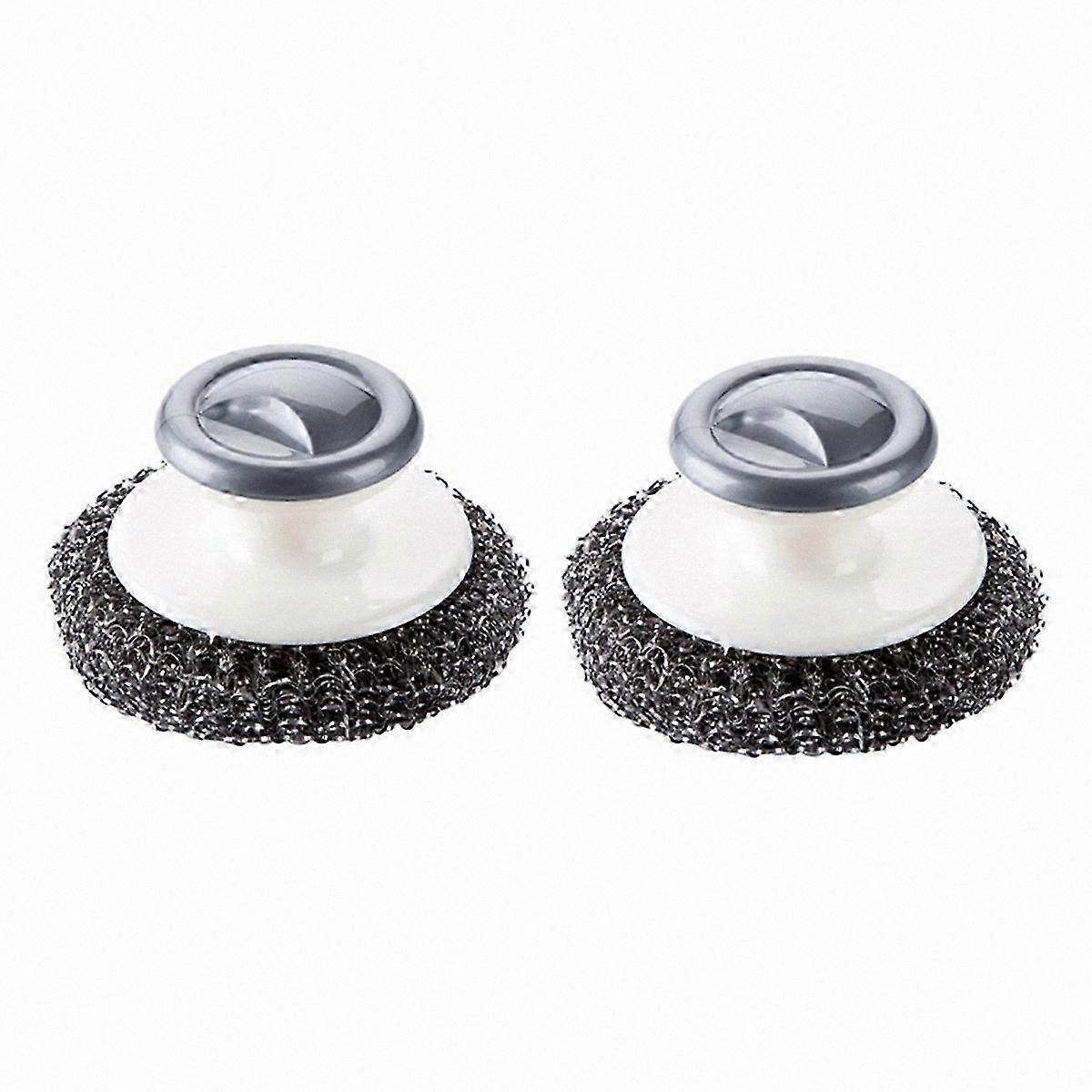 Durable Stainless Steel Scrubbers with Ergonomic Handle - 2 Pack Heavy Duty Kitchen Cleaning Brushes | Rust-Proof Metal, Grey/White