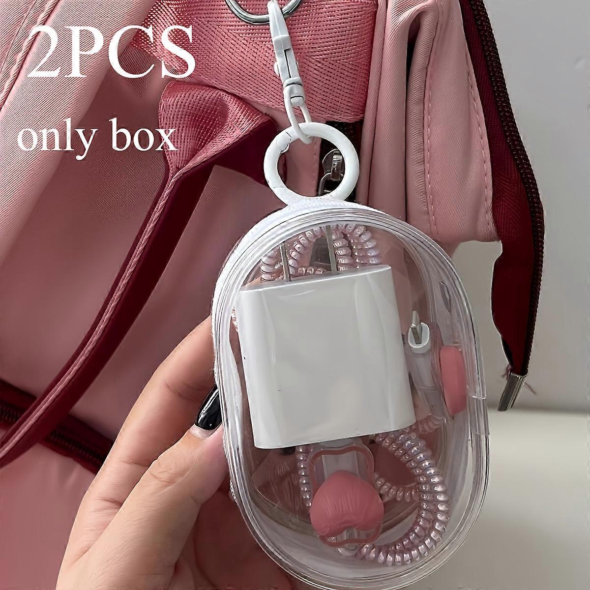 2pcs mini and portable transparent cable organizer box for storing data cable chargers,keychain bags for outdoor travel