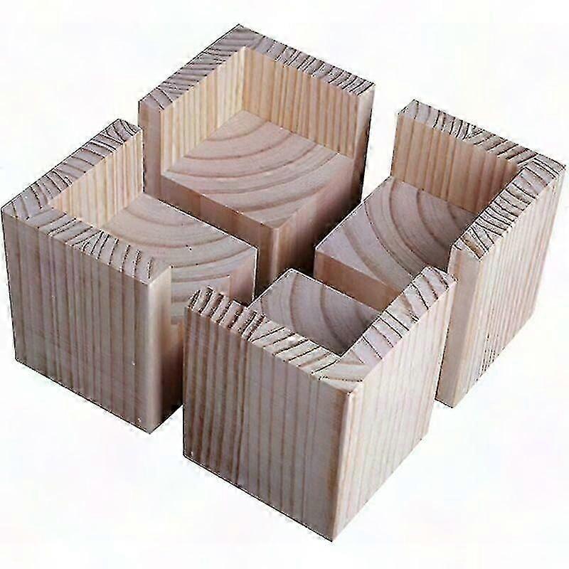 Solid Wooden Furniture Risers - Heavy Duty Bed & Desk Lift Support Blocks - 4 Pack, 5x5x5cm, Natural Pine - Space Saving Home Storage Solution