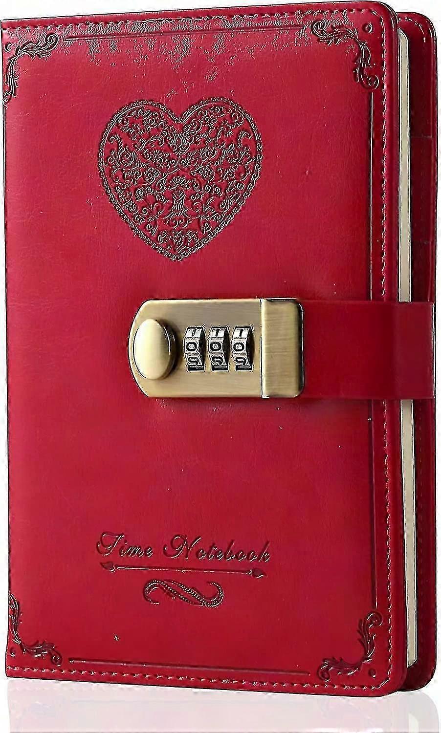 Elegant Secret Diary with Combination Lock - Leather Password Journal for Girls & Women | B6 Size, 5.3x7.8", Red | Perfect Gift for Creative Writing