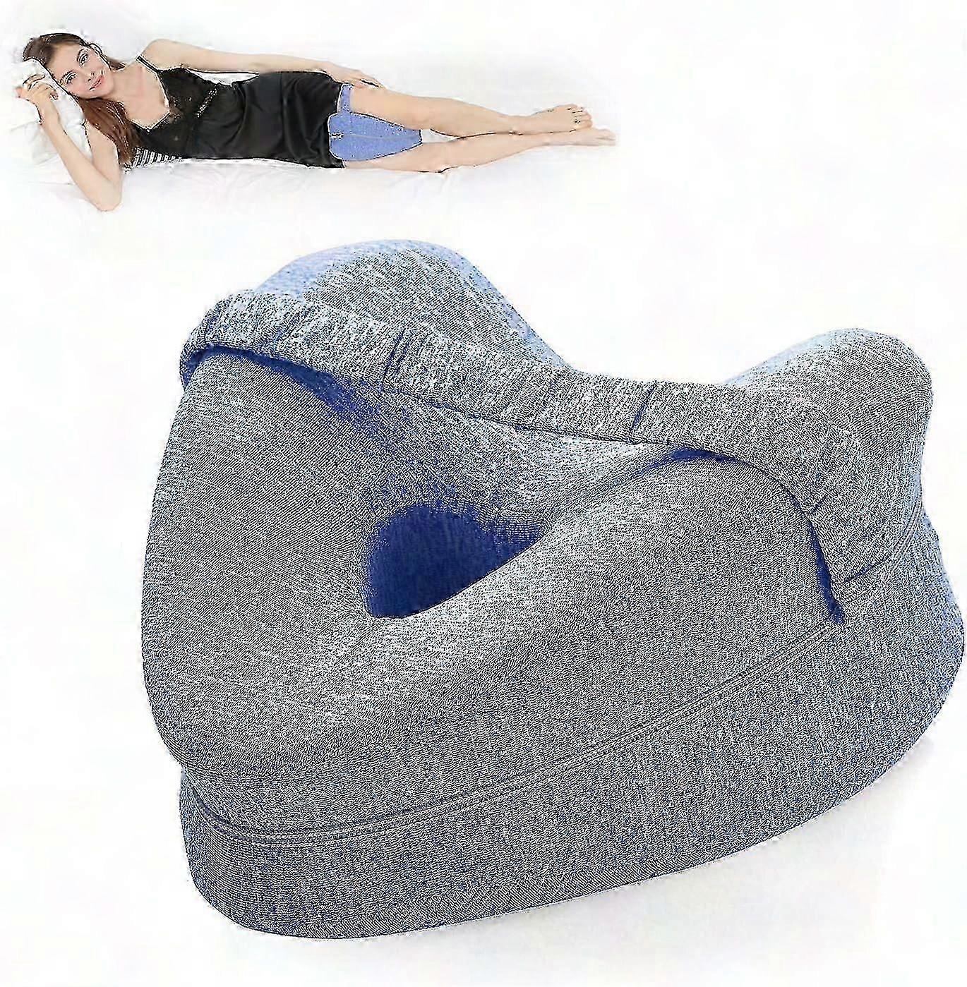 Ergonomic Smooth Spine Pillow - Sciatica & Hip Pain Relief Support | Memory Foam with Breathable Fabric, Blue Denim Style | Side Sleeper Leg Cushion