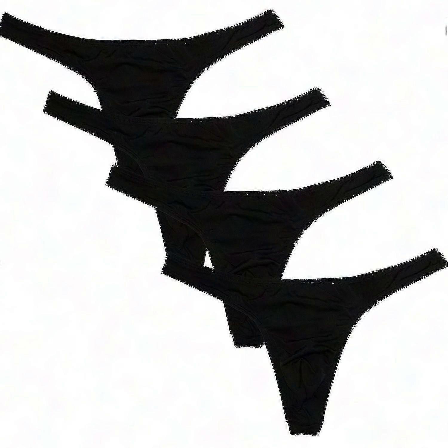 Pack of 4 Men's Microfiber Thong Strings - Comfortable Low Rise Stretch Underwear Multipack. Meat: Lightweight Fibre, Black, Seamless Edges. Closer: B