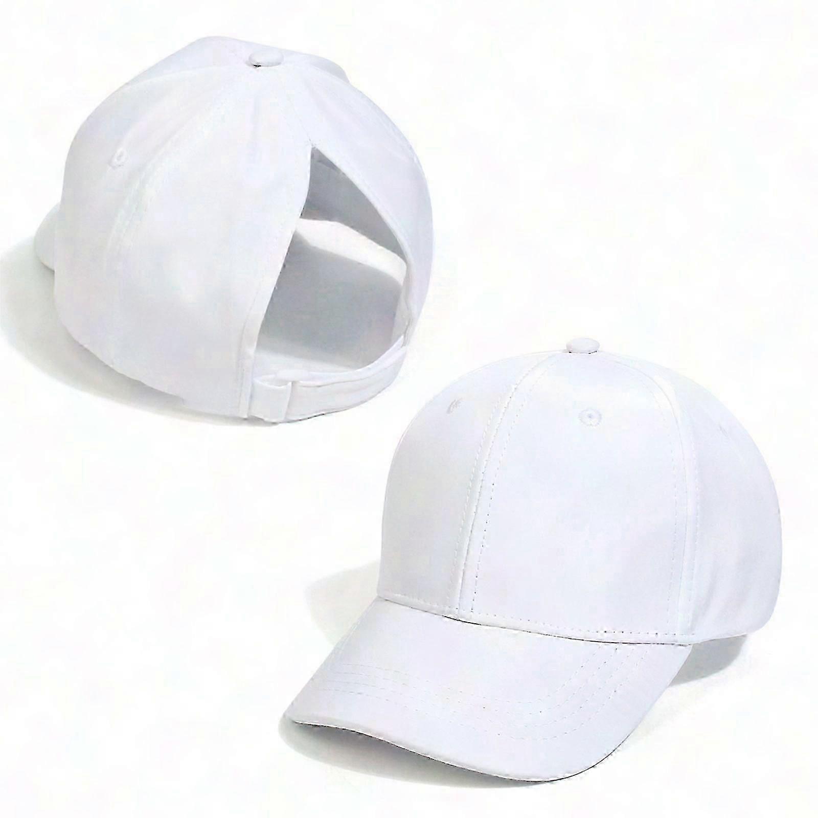 Adjustable High Bun Ponytail Hat for Children - Girls Baseball Cap for Kids Outdoor Summer | White Cotton, One Size | Perfect Beach & Holiday Headwear