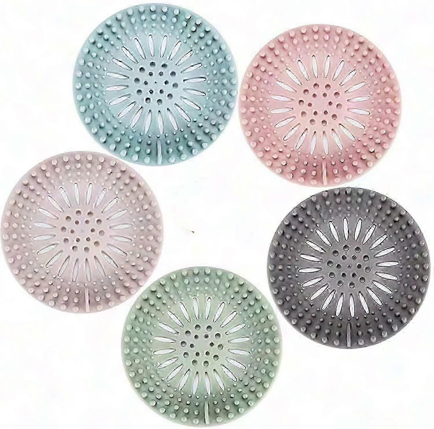 [Durable to Use] Made of flexible Thermo-Plastic-Rubber, anti-slip, characterized by resilience and abrasive resistance. Extremely durable to use.[Multiple Colors for Choice] 5 colors, with Grey, Blue, Green, Pink and Brown. Coloring your life. 5 items, convenient to replace.[Easy to Remove and Install] Put the drain hair catcher in the corresponding sink. While removing, just grab the clump out of the catcher and keep going.[Product Specification] With the size of 5.12 *5.12 *0.48.[Widely Used Scenarios] Suitable for bathroom, laundry, bathtub, kitchen and so on.Better on smooth tile surfaceSuitable for drain cover less than 4.7*4.7 inches. Make sure the hair catcher is suitable for your drain before using it. Suitable for Slightly Domed Drain, Flat Drain, Open Drain.Non-DeformableOur hair catcher is made of high quality silicone, durable and resistant to deformation.Easy to clean and useEasy to clean, round hole innovative design for easy cleaning of debris, it is recommended to regularly clean the hair and other debris on the shower hair trap to prevent blockage and ensure drainage speed.Upgraded Shower Drain Cover, the shower hair catcher has a raised design and round holes design to blocks hair and other debris effectively while allowing water to drain rapidly. The design of this drain filter increases the drains flowing area and accelerate the drainageMore effective than ordinary drain protectors (it does not slow down the drainage process when the hair is stuck).