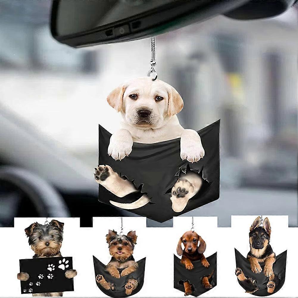 Plush Puppy Rearview Mirrors Pendant Car Hanging Ornaments Auto Interior Hanging Decoration for Car Funny Toy Gift for Men Women