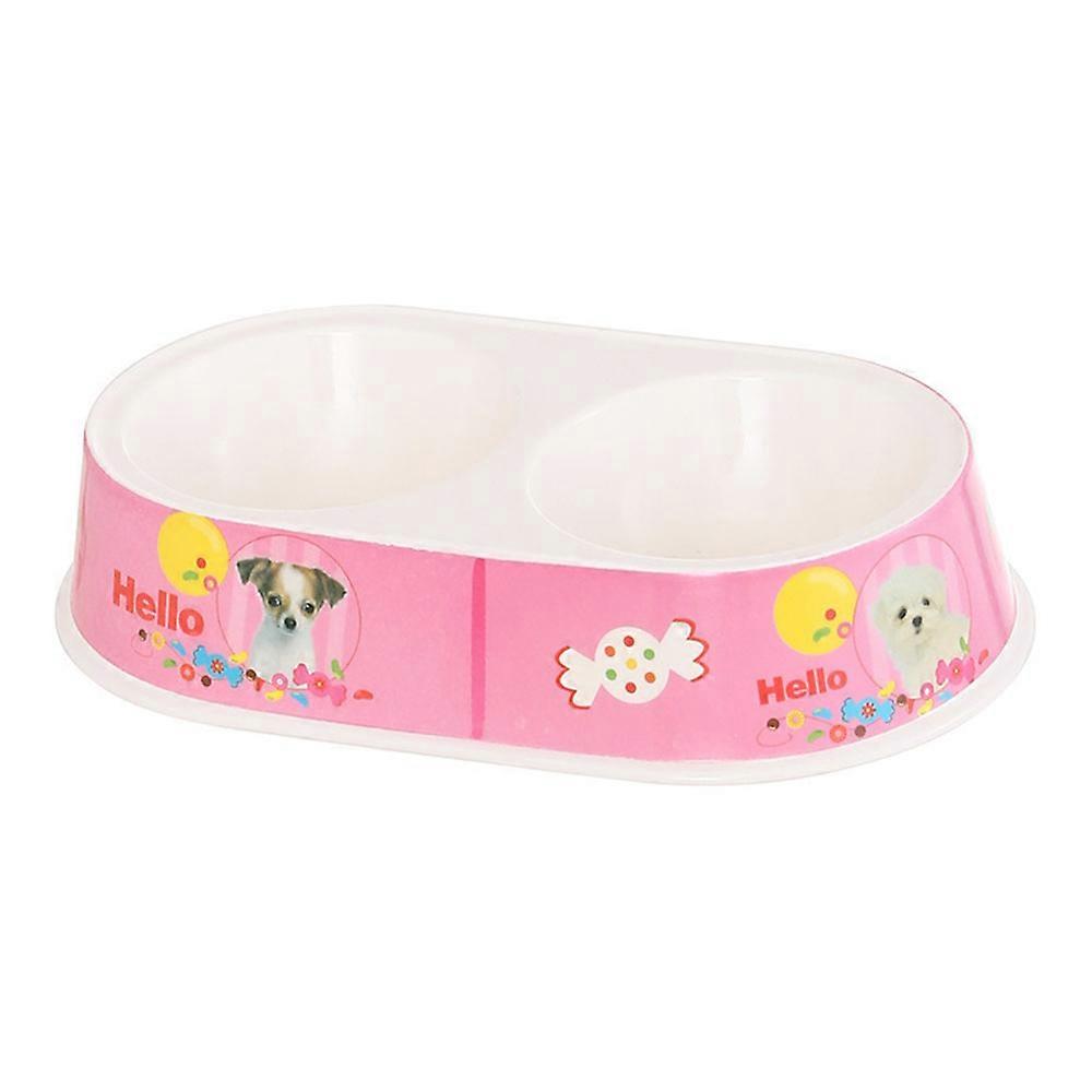 Cute Printed Double Compartment Pet Bowl - Round Anti-Spill Food Bowl, Durable Non-Slip Pet Feeding Dish for Cats Dogs