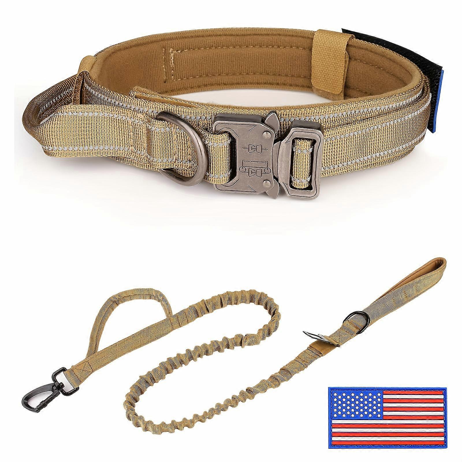 Tactical Dog Collar and Leash Set, Military Dog Collar and Leash for Medium to Large Dogs, Adjustable Heavy Duty Metal Buckle Re