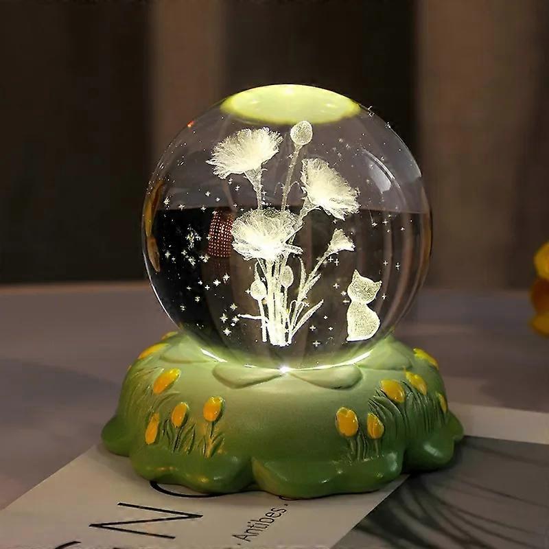 Carved Rose Carnation Flower Crystal Ball Small Night Lamp Home Warm Small Ornaments Birthday Gift Gift
