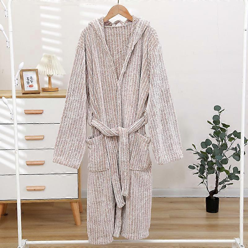 1pcs Unisex Autumn stripe Bathrobe Hooded Kimono Bath Robe Night Cozy Sleepwear Women Dressing Gown Home Clothes