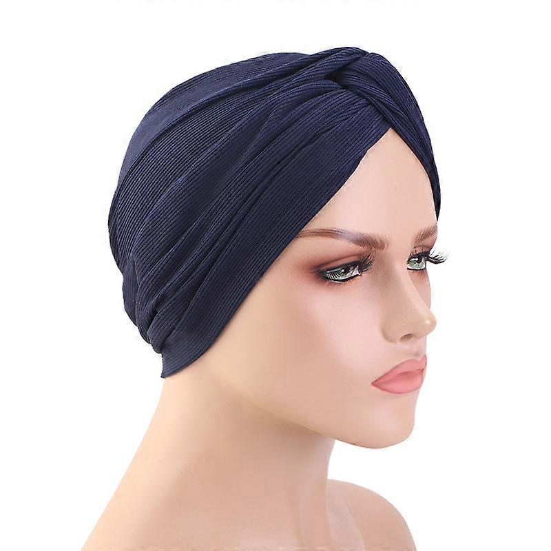 New Cross Fine Pattern Rippled Twist Turban Muslim Headscarf Bonnet Stretchy Female Head Wraps Solid Cotton Turbante Indian Hat