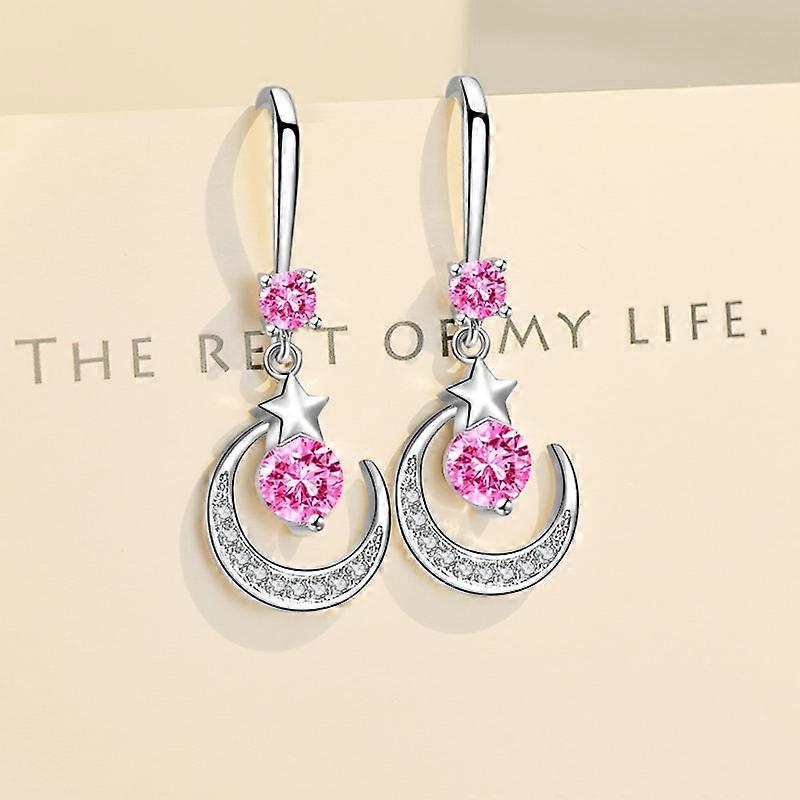 Female Fashion Star Moon Earrings 925 Sterling Silver White Sapphire Pink Blue White Artificial Dangle Earrings