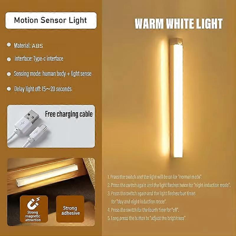 USB Rechargeable Motion Sensor LED Light Magnetic Dimmable Bar Lamp with 3 Modes for Wardrobe Bedside Stairs Cabinet Lighting