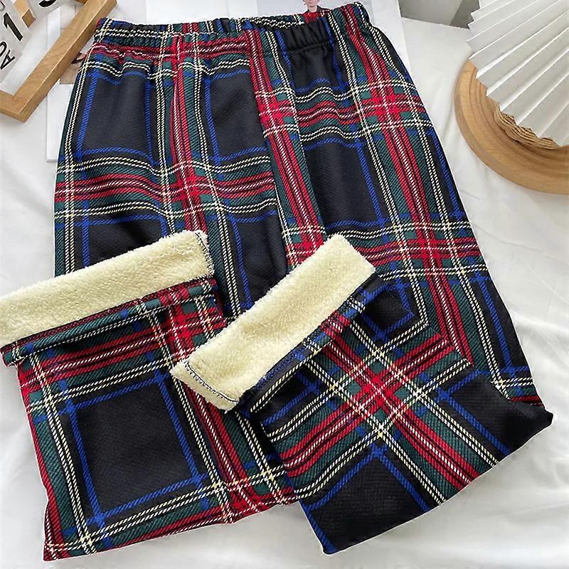 Winter Plaid Wide-Legged Pants for Women High-Waisted and Loose Fit Fleece-Lined Thickened Lamb Wool Casual and Warm Pants