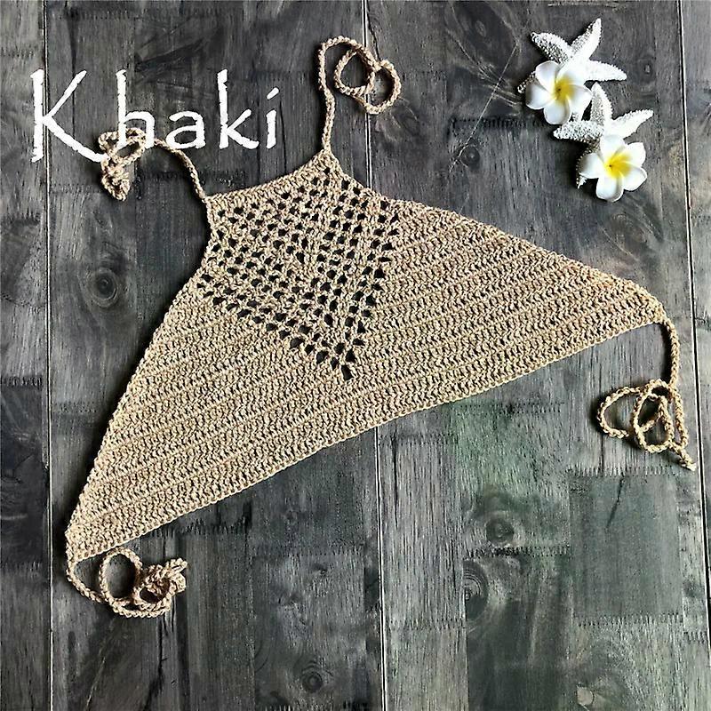 Hand Crochet Bikini Womens Sexy Beach Handmade Crochet Wrap Neck Bikini Bra Swimwear Swimwear Beachwear Womens Tops