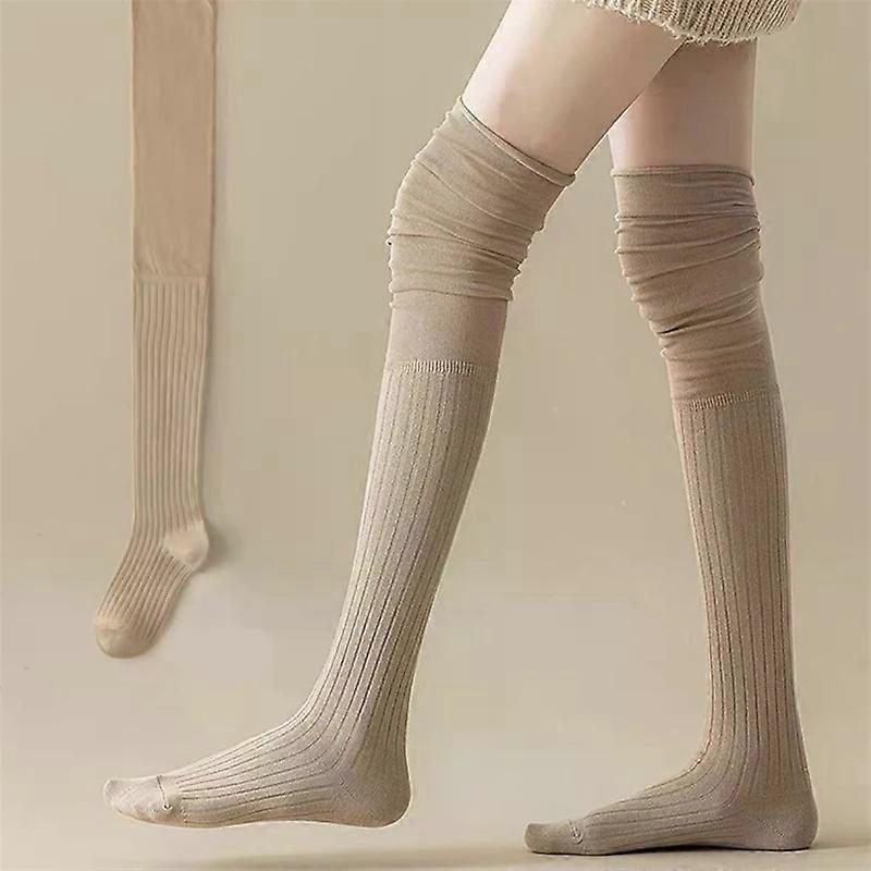 1/5Pairs Women’s Knee High Socks Fashion Long Stacked Socks Solid Color Patchwork Thin High Elastic Stockings Casual Wear