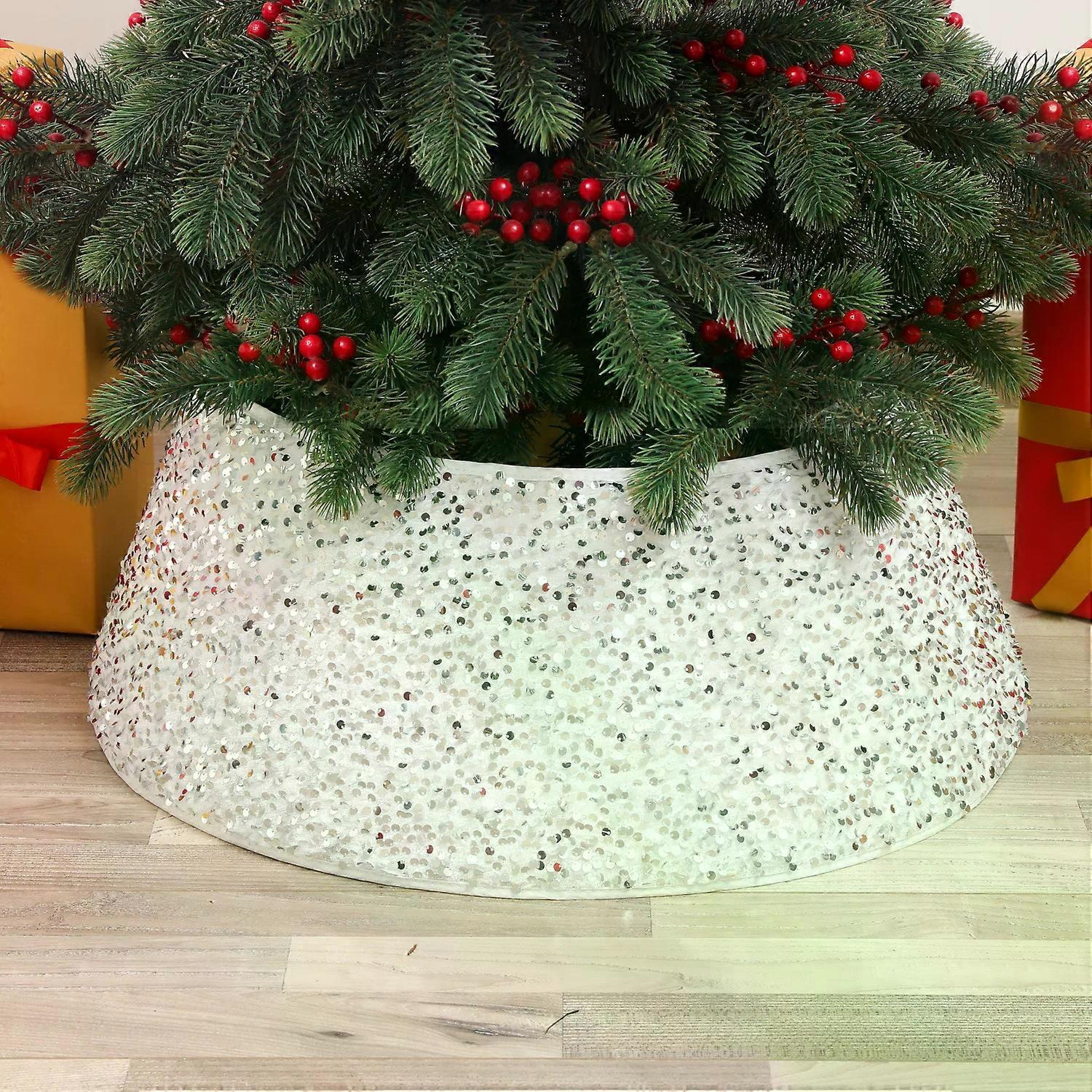 Christmas Tree Skirt Sequin Print 3D Holiday Tree Bottom Ornament Indoor Xmas Party Home Decoration Supplies