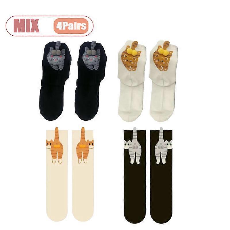 Cartoon 3D Abstract Playful Cat Dog Egg Socks Womens Couple Mid Calf Cute Whimsical Kitten Puppy Ins Style Socks