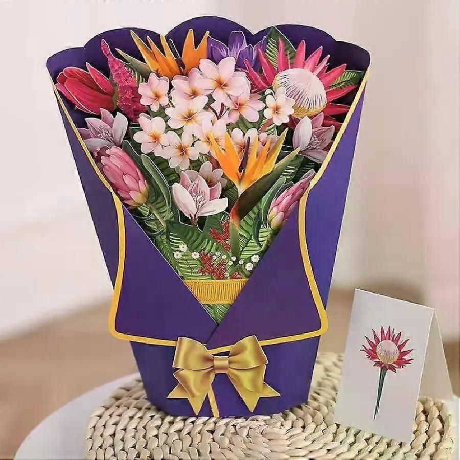1/3/5/10PCS Paper Flower Bouquet Card 3D Pops-up Bouquet Forever Paper Hand Bouquet Valentine's Day Gift Mother's Day Cards