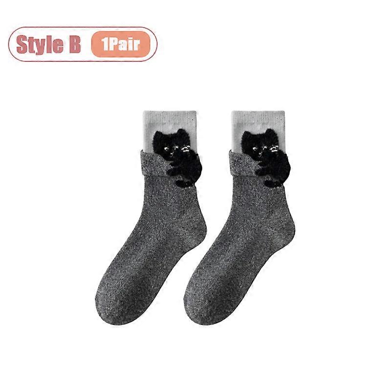 Cute Cartoon Cat Print Knee High Socks for Women Soft Cotton Fall Winter Warm Crew Socks Fashion Flocking Cozy Daily Wear