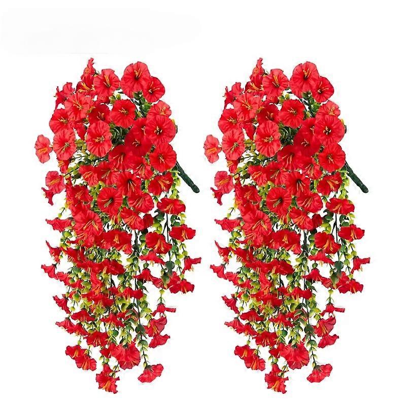 Artificial Faux Plants Flowers Fake Silk Fuchsia UV Resistant Realistic Morning Glory for Hanging Planter Porch Patio Decoration