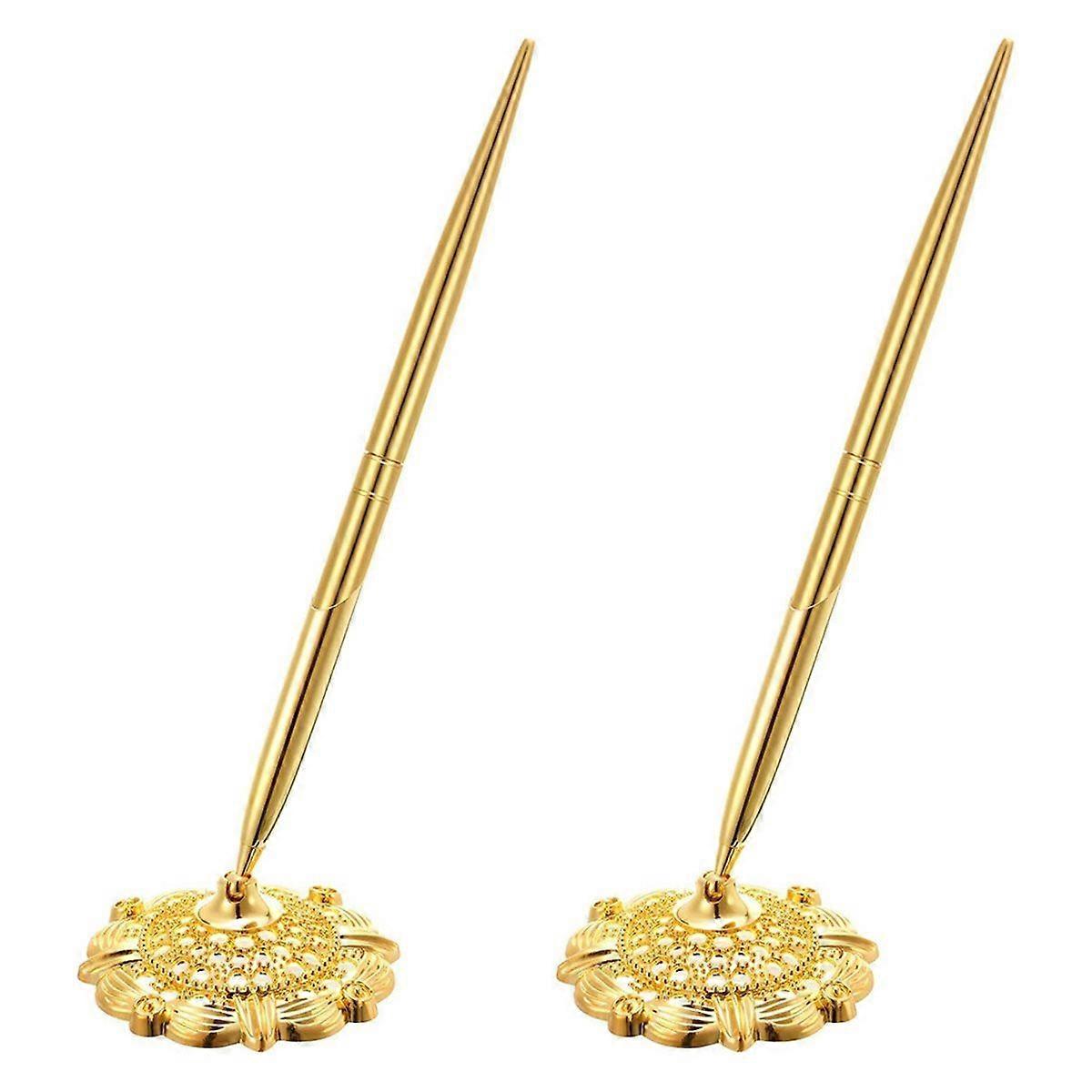 2 Pcs Gold Hollow Round Pen Holder Metal Pen Stand Holder Set Signing Pen Set Signing Desk Ballpoint Pens