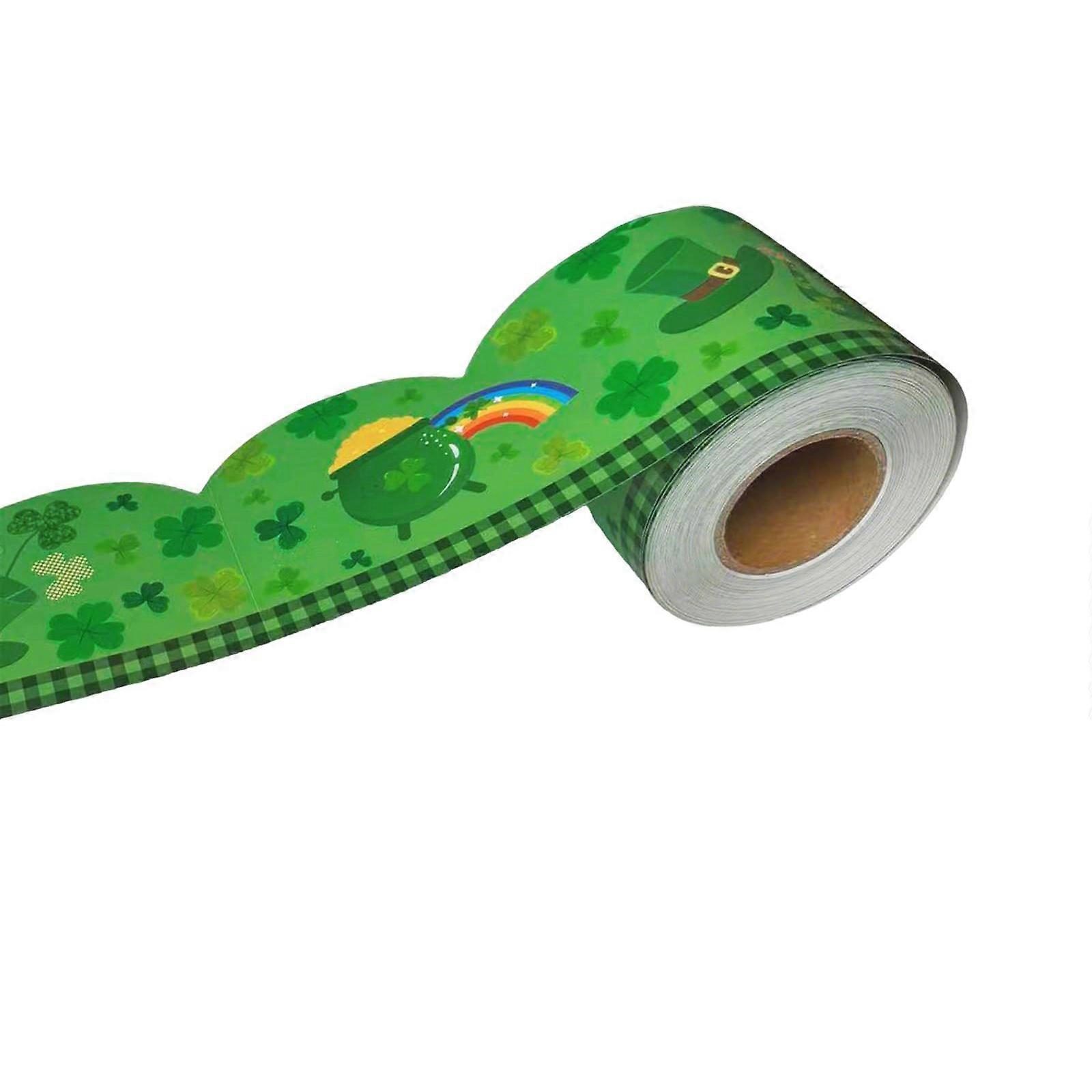 Bulletin Board Borders Trims Green Shamrock Decorative Border Sticker for School Bulletin Board Kid Room Wall Decoration 20 meters