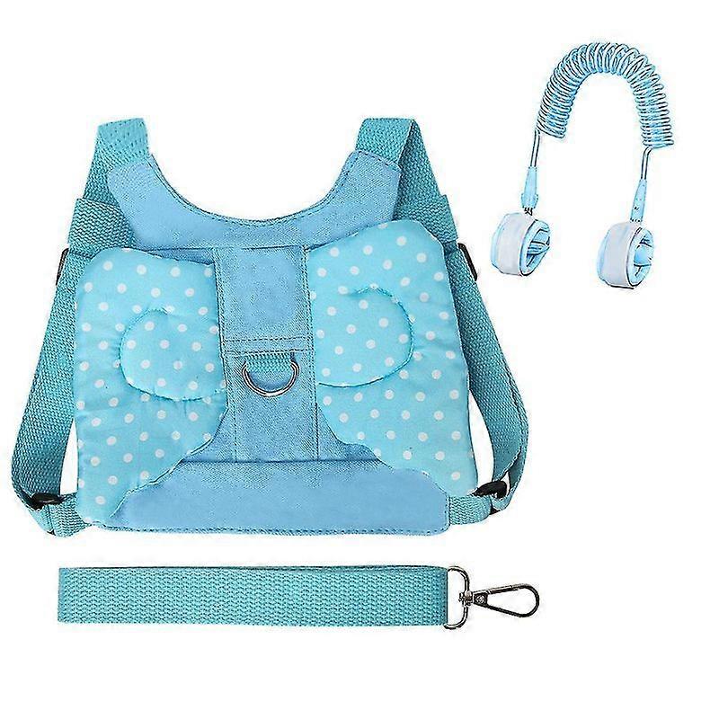 Product Description Material: polyester+PU Size: Backpack: 20.5*18cm; Bracelet: Telescopic 150cm Color: blue, pink Style: Style 1, (Little Angel + Spiral Bracelet); Style 2, (Butterfly + Spiral Bracelet) Quantity: 1 set Package Contents: 1*Backpack, 1*Bracelet 1.Durable and Comfortable Wrist LinkThe wrist link is made up of wire and sturdy PU material which is secure and difficult to be cut off. Ultra-soft sponge padding wristband can well protect wrist from scratching and sweating. 2.Unique designThe Child safety leash backpack with unique design is the childs favorite style, which makes the childs look more lively and cute. Shoulder straps and buckle strap are freely adjustable to fit most kids.The 360 swivel joint gives children complete freedom within the range of the leash harness, let children learn to walk independently. 3.Guarantee of safetyThe child safety harness can make sure that your children are free to move around within your sight. Even in crowded places, it can always ensure the safety of children and prevent them from getting lost or falling. Not only enable children to explore the world freely, but also liberate your shoulder arms and reduce your fear and anxiety. Ideal mother helper. 4.Detachable and Adjustable Backpack LeashThis anti-lost Harness Leashes can be detachable and adjustable easily, suitable for children from 1 to 5 years old. It is easy to wear and carry, the safety buckle and straps maintain perfect positioning to Keep kids comfortable, ideal for airports, parks, museums or other crowded places. 5.3 Different Usage Children wear the leash backpack with rope led by adult. Children wear the harness attached with wrist link led by adult and whose hand wear the wristband. Wristband both be worn on parent and kids hands. No matter which one is very easy to use and safe