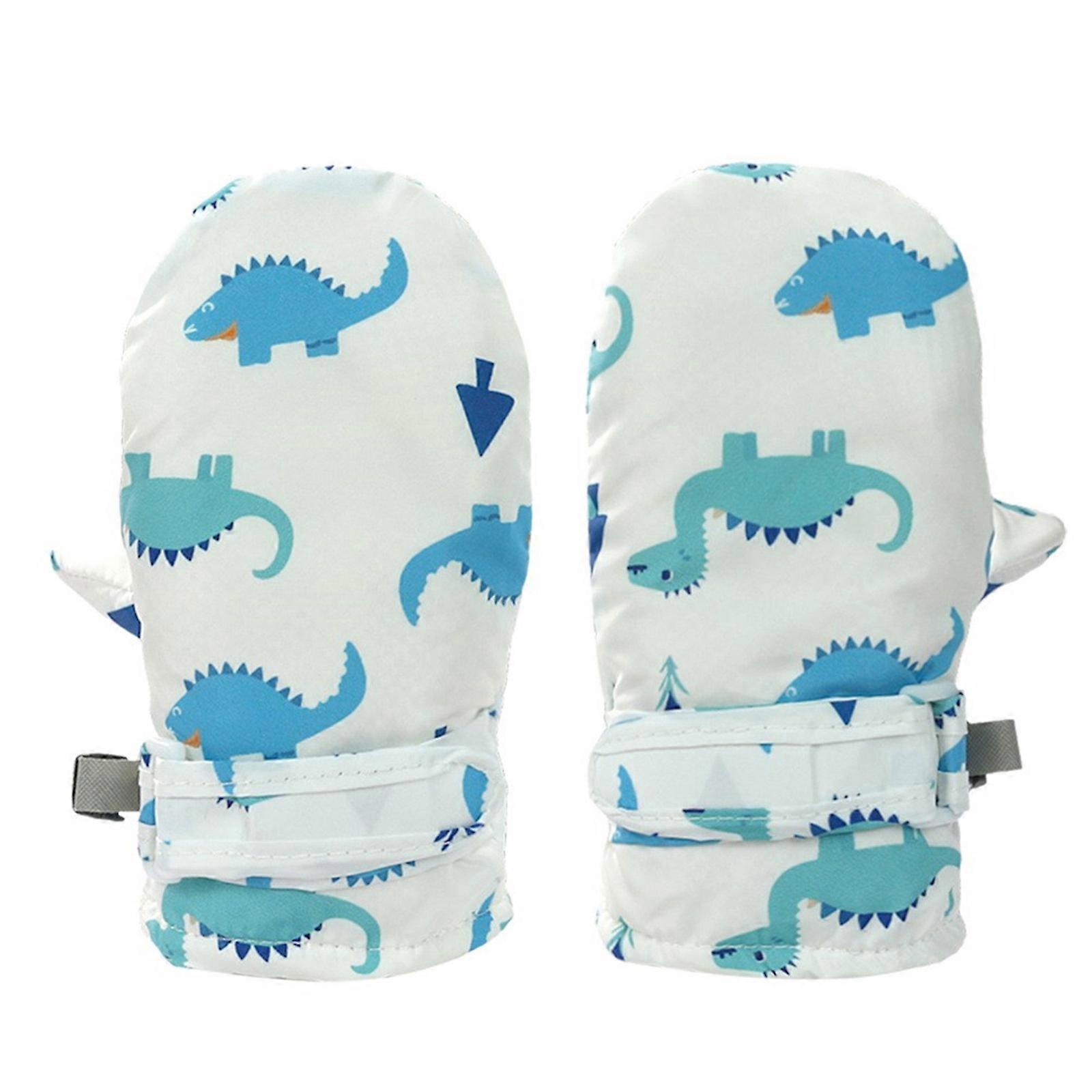 Cartoon Dinosaur Gloves Children's Warm Mittens Kids Winter Gloves Thickened Cold Weather Windproof Skiing Gloves White M