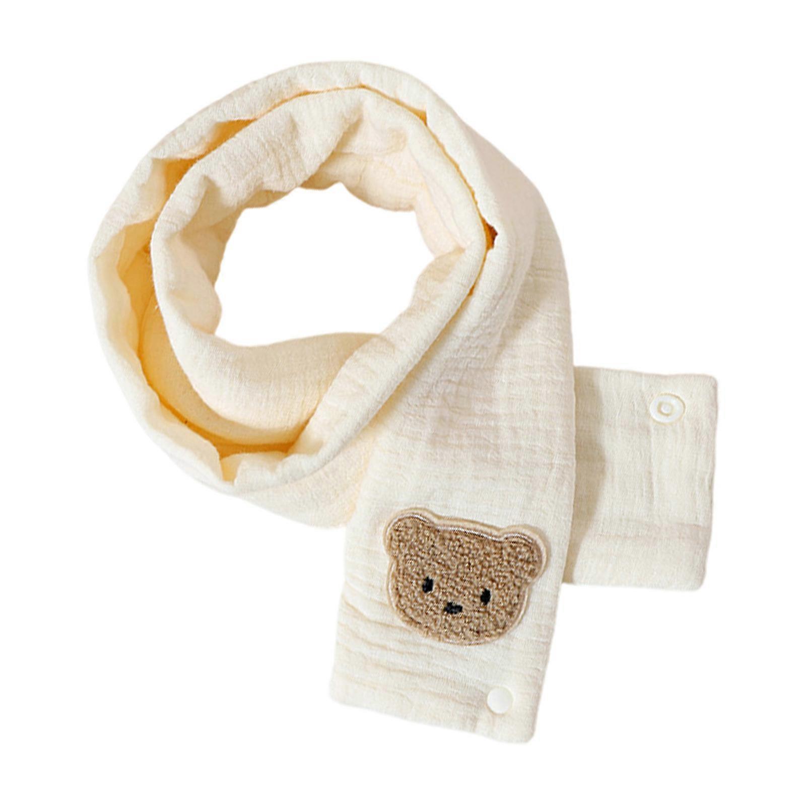 Winter Warm Scarf Lovely Embroidery Kids Scarves Cartoon Bear Patterned Long Muffler Fashionable Baby Neckerchief Milky white