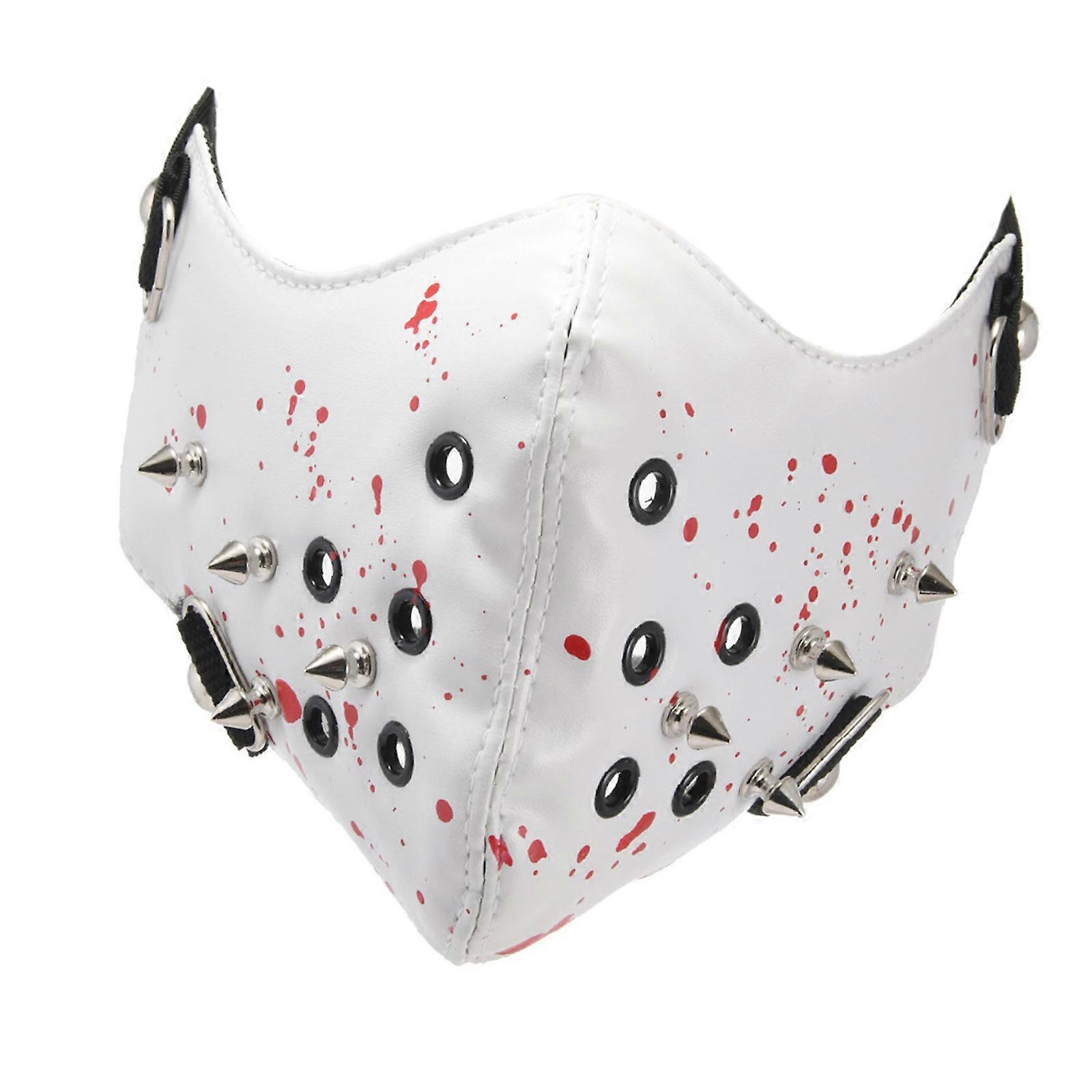 Long Spikes Studded Leather Mask,Punk Biker Motorcycle Rock Half Face Mask Anti-Dust Sport Mask for Halloween Cosplay White