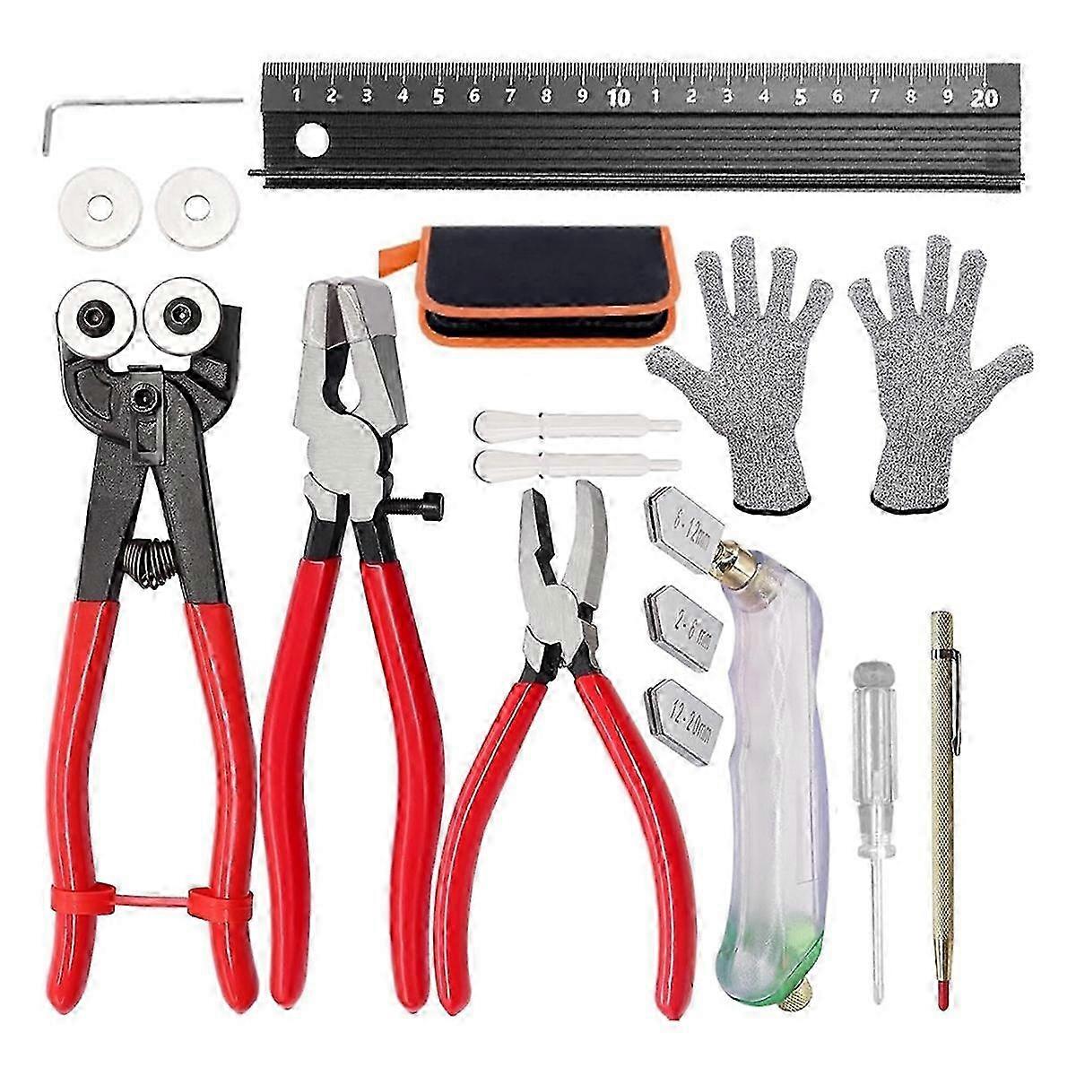 16Pcs Glass Cutter Tool Kit, 8 Inch Mosaic Wheeled Nippers, 8 Inch Glass Running Pliers, 6 Inch Brea